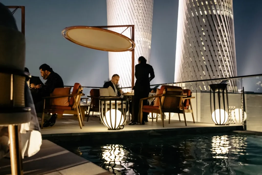 The Rooftop offers an idyllic escape featuring unobstructed views of Lusail City’s skyline and Lusail Plaza Towers. Selection of Passed Canapés, Platters and Selected Beverages.